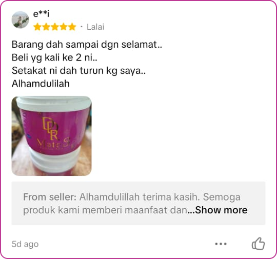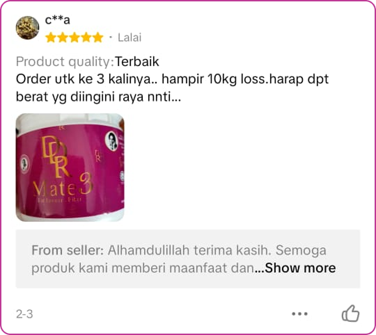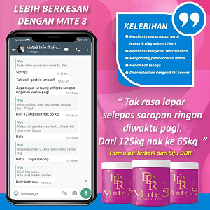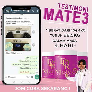 Sertai beribu pengguna yang telah berjaya mencapai berat ideal dengan DDR Mate 3. Tekan Butang Dibawah atau produk ditepi.